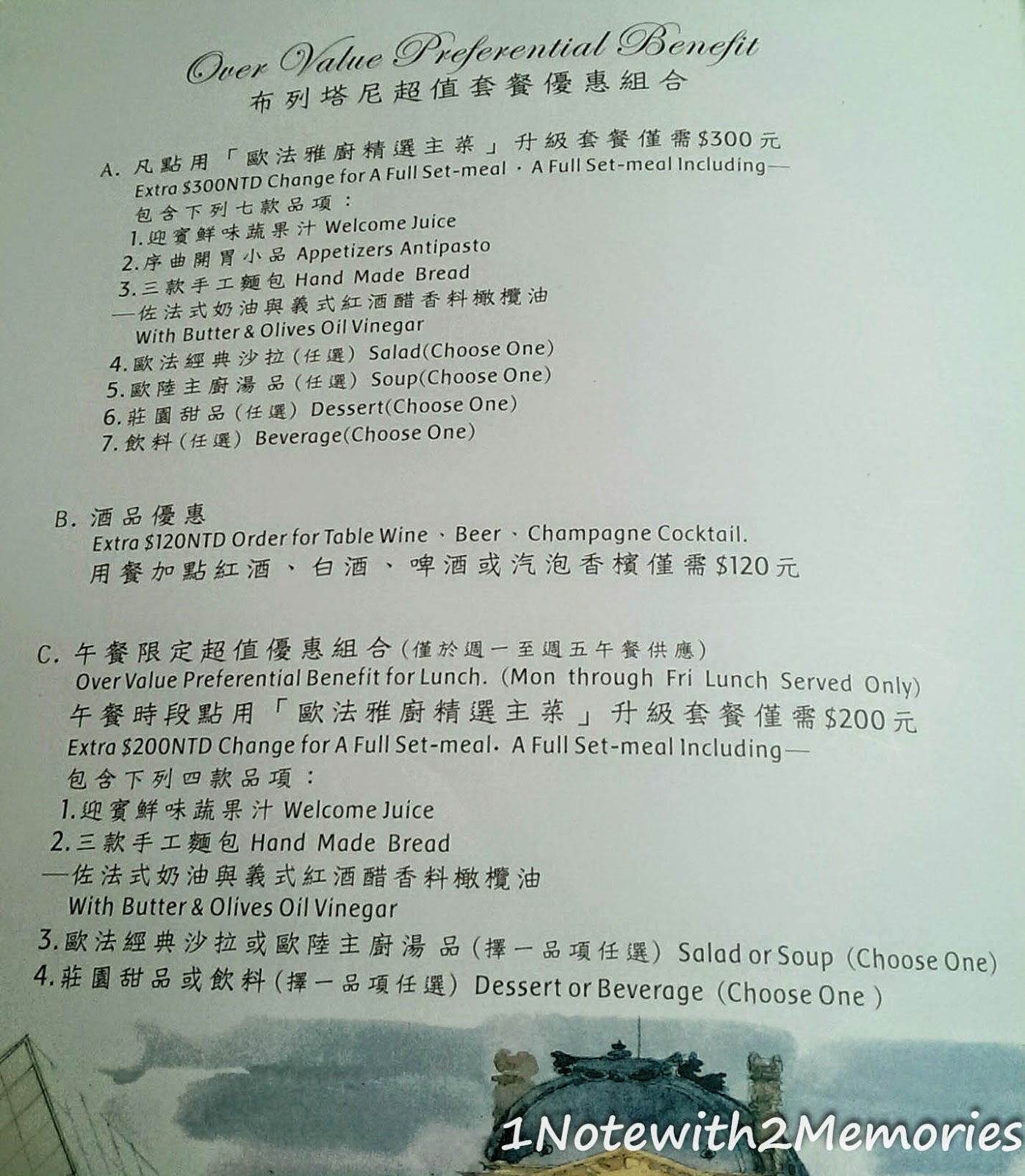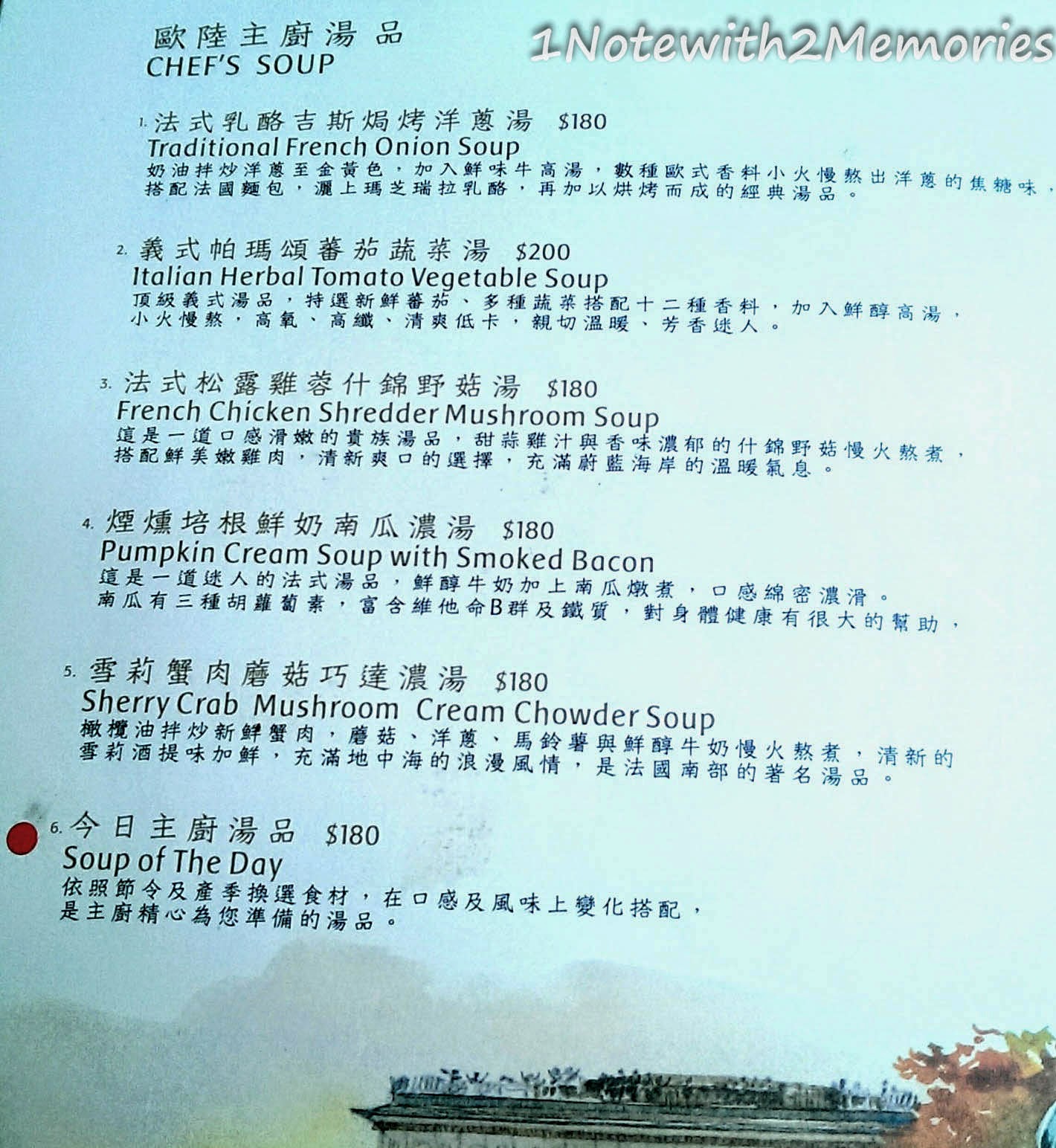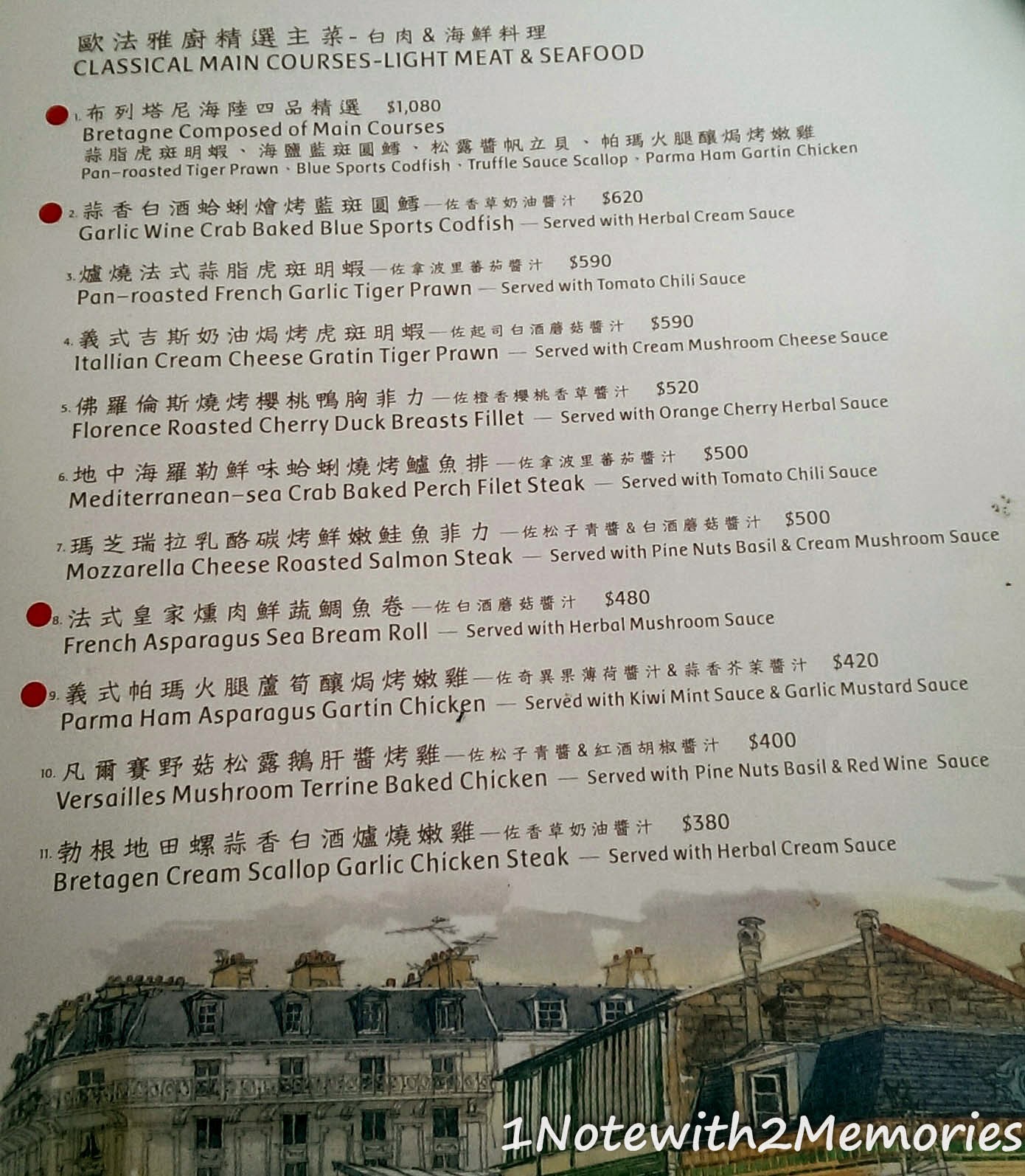 主餐是以單點計算 ( 主餐價位$380~$1080 )