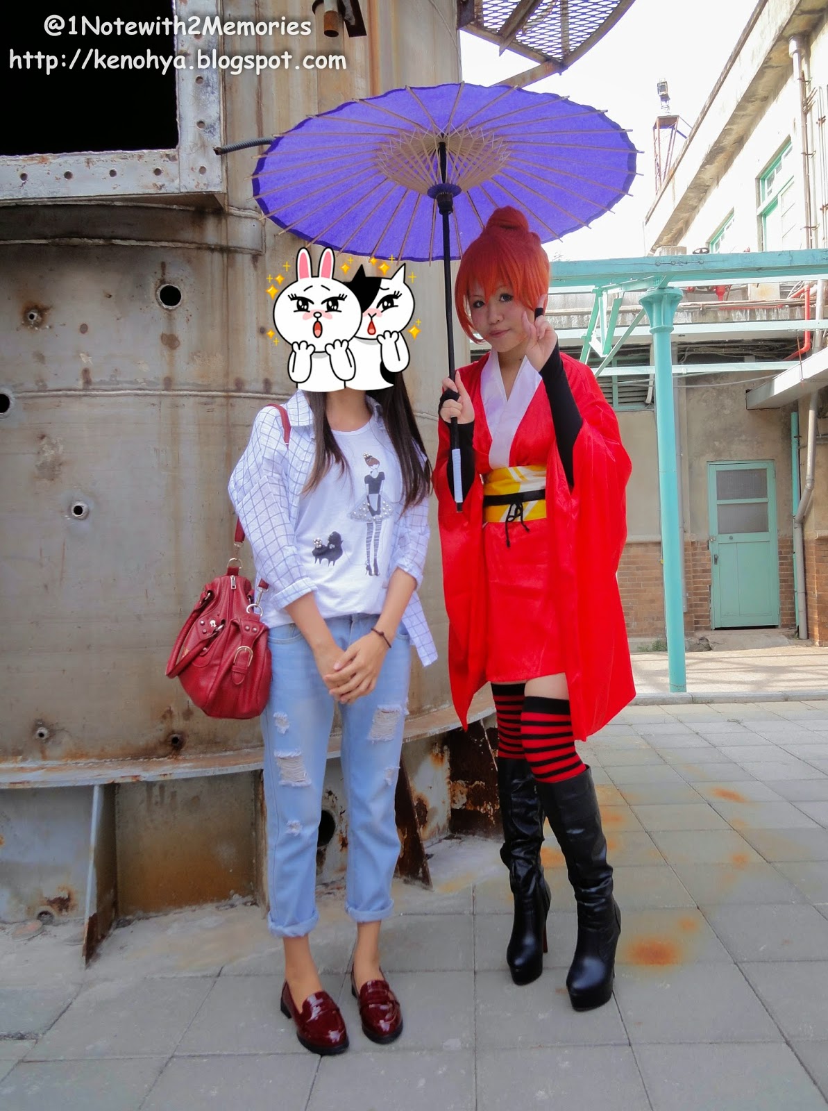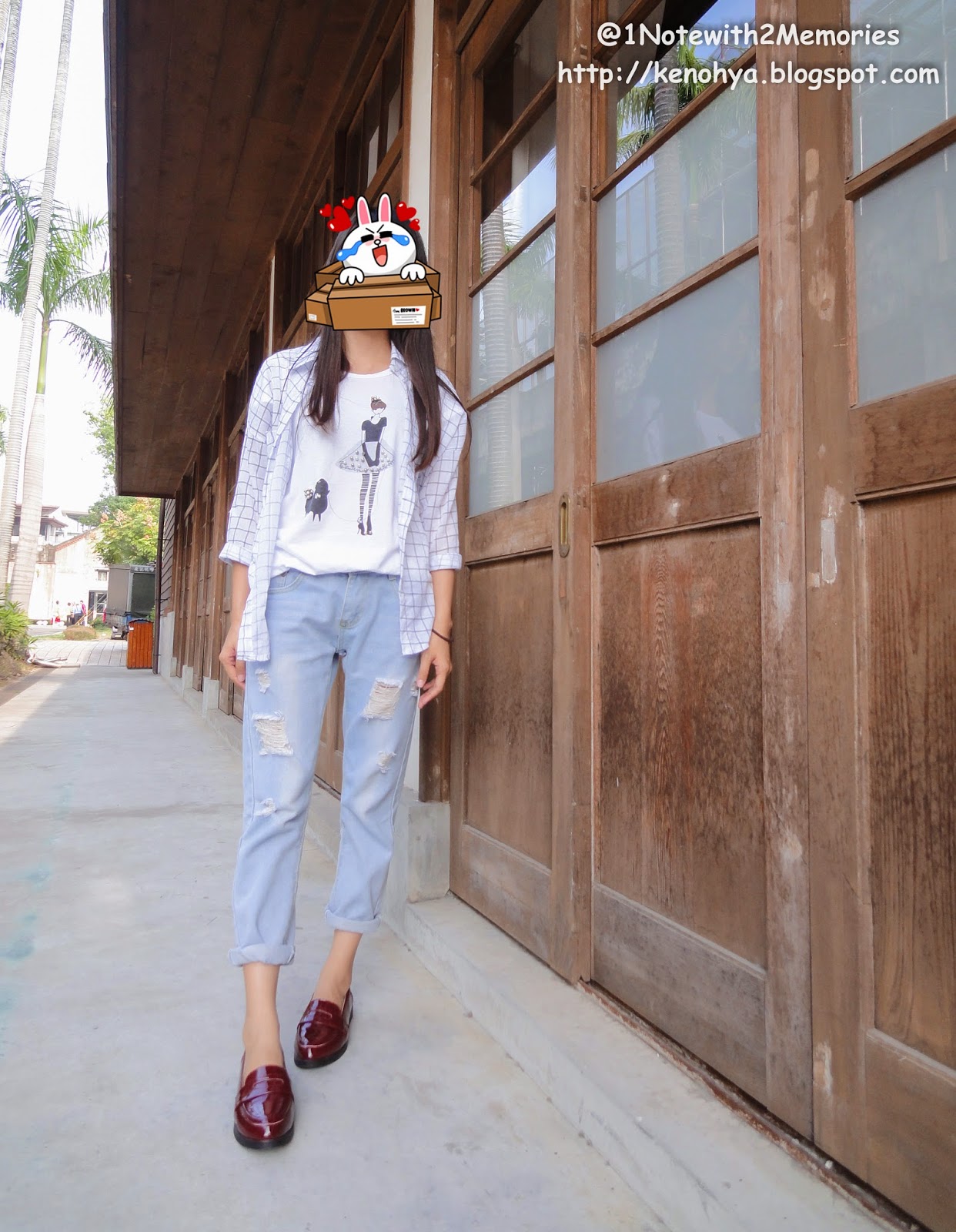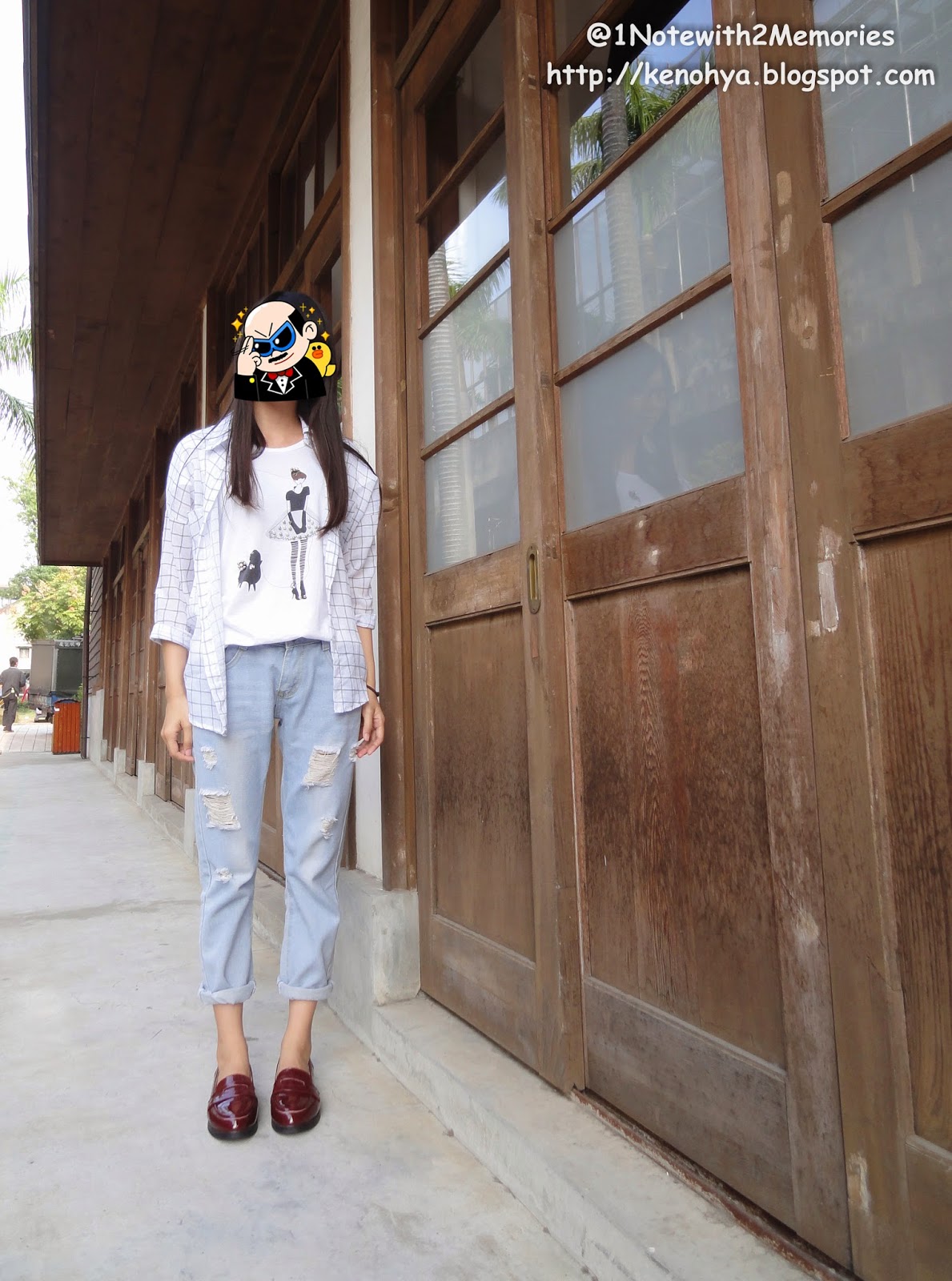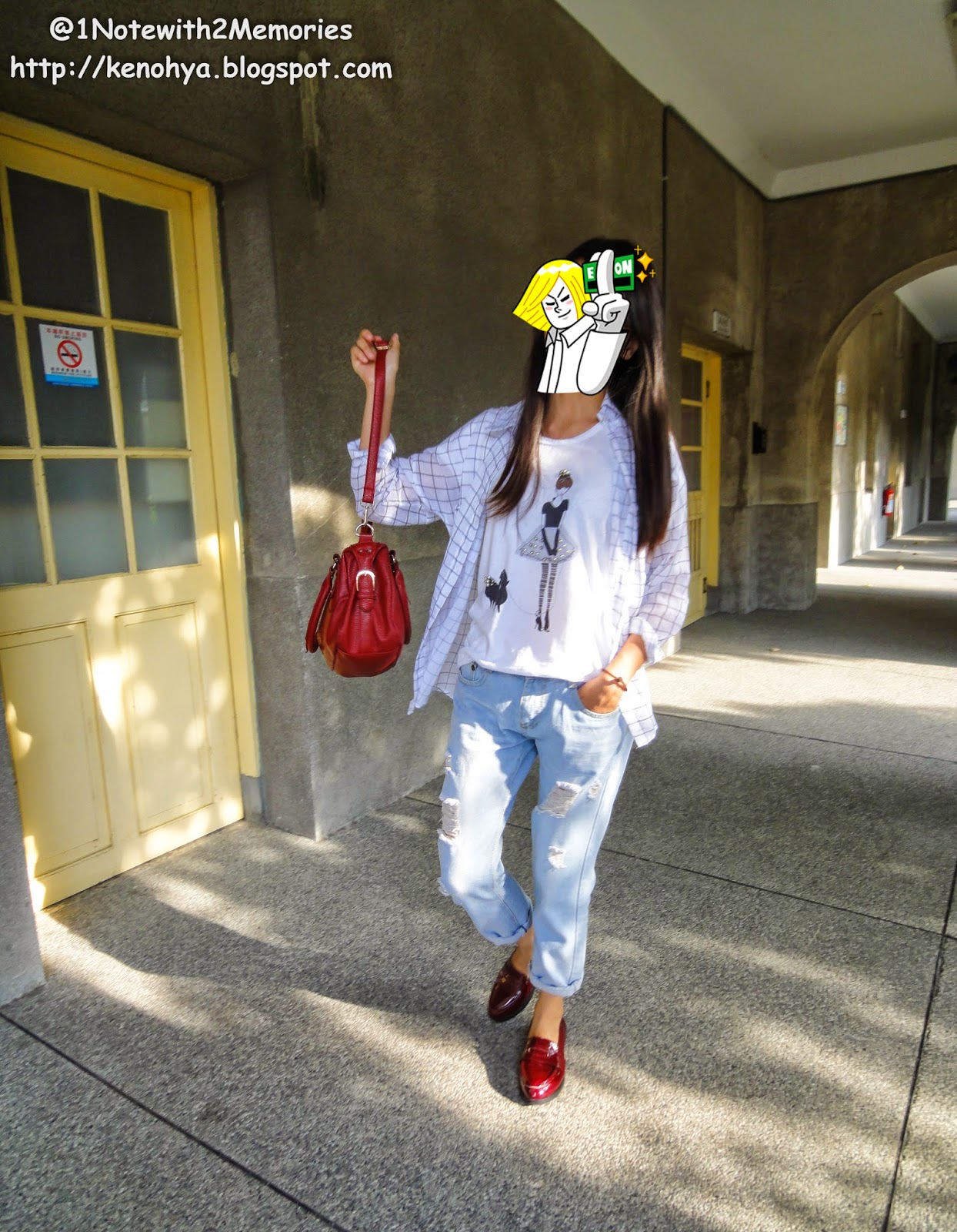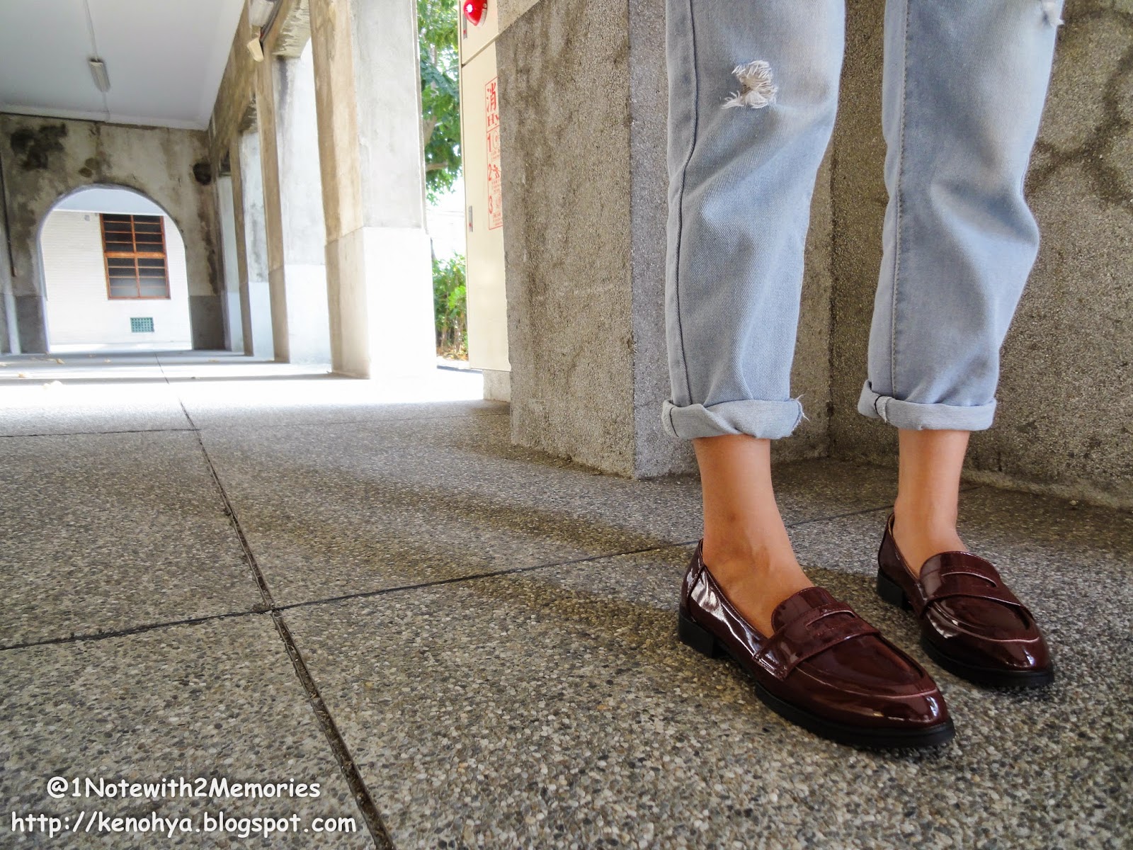 因為覺得淺藍褲搭酒紅鞋有點怪...